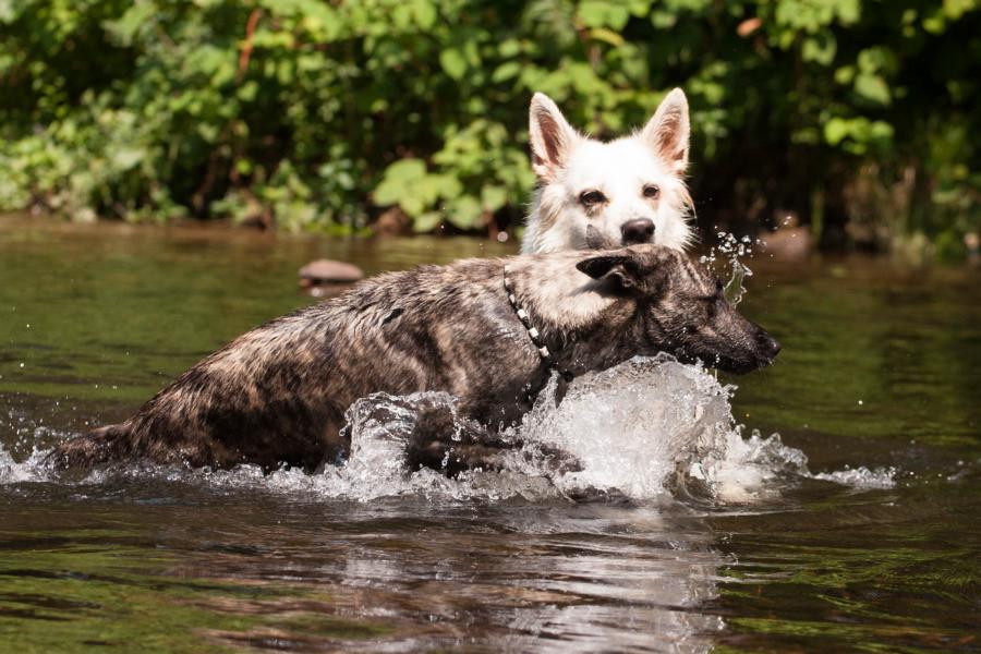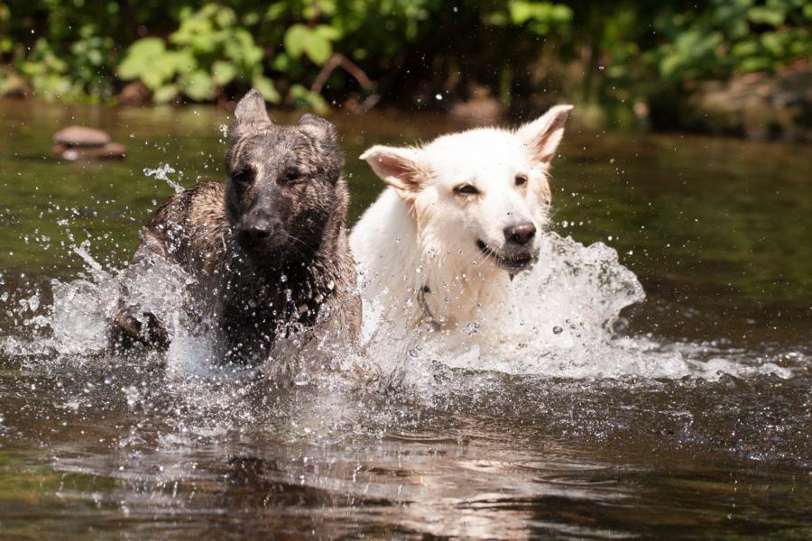 Heute ging es mal wieder in die Schweiz. Robin hat Geburtstag gefeiert und wir mit. Frauchen hat extra getrocknete Ohren mitgenommen, damit wir friedlich sind, wenn Willi mit dem Welpen kommt. Leo ist ein Irischer Wolfshund und mit seinen gerade mal 6 Monaten bereits größer als Kimya und ich. Aber als er unsere Ohren stibiezen wollte, hab ich ihm was gegeigt 🙂 Nicht schlimm – nur laut…